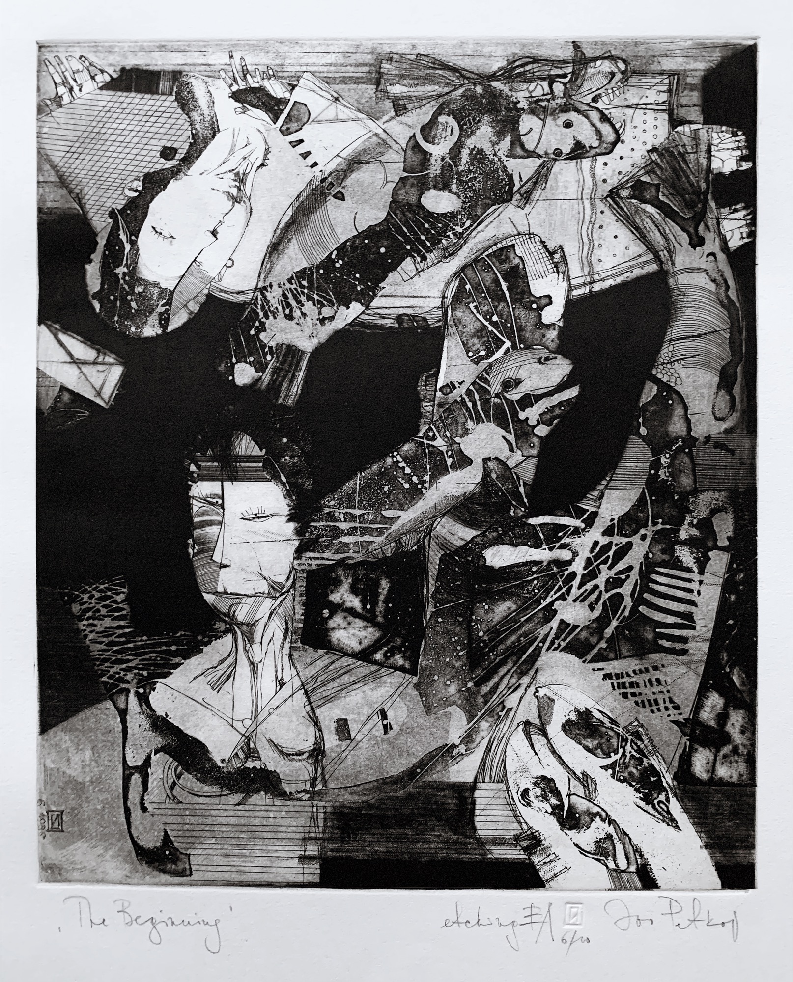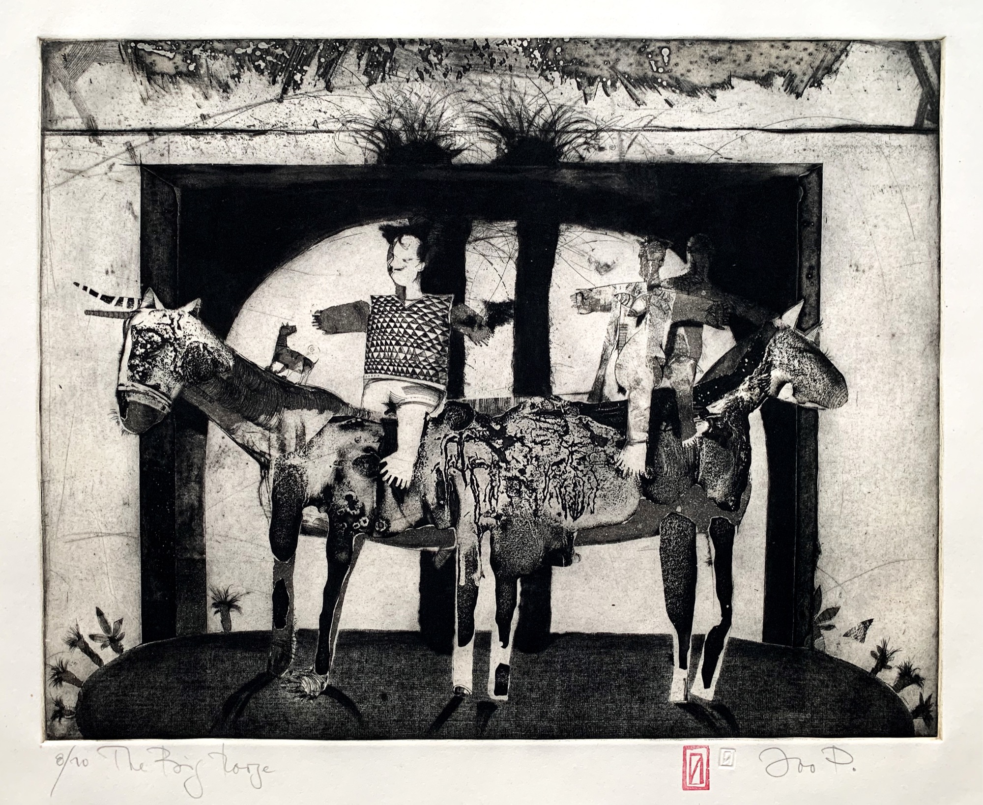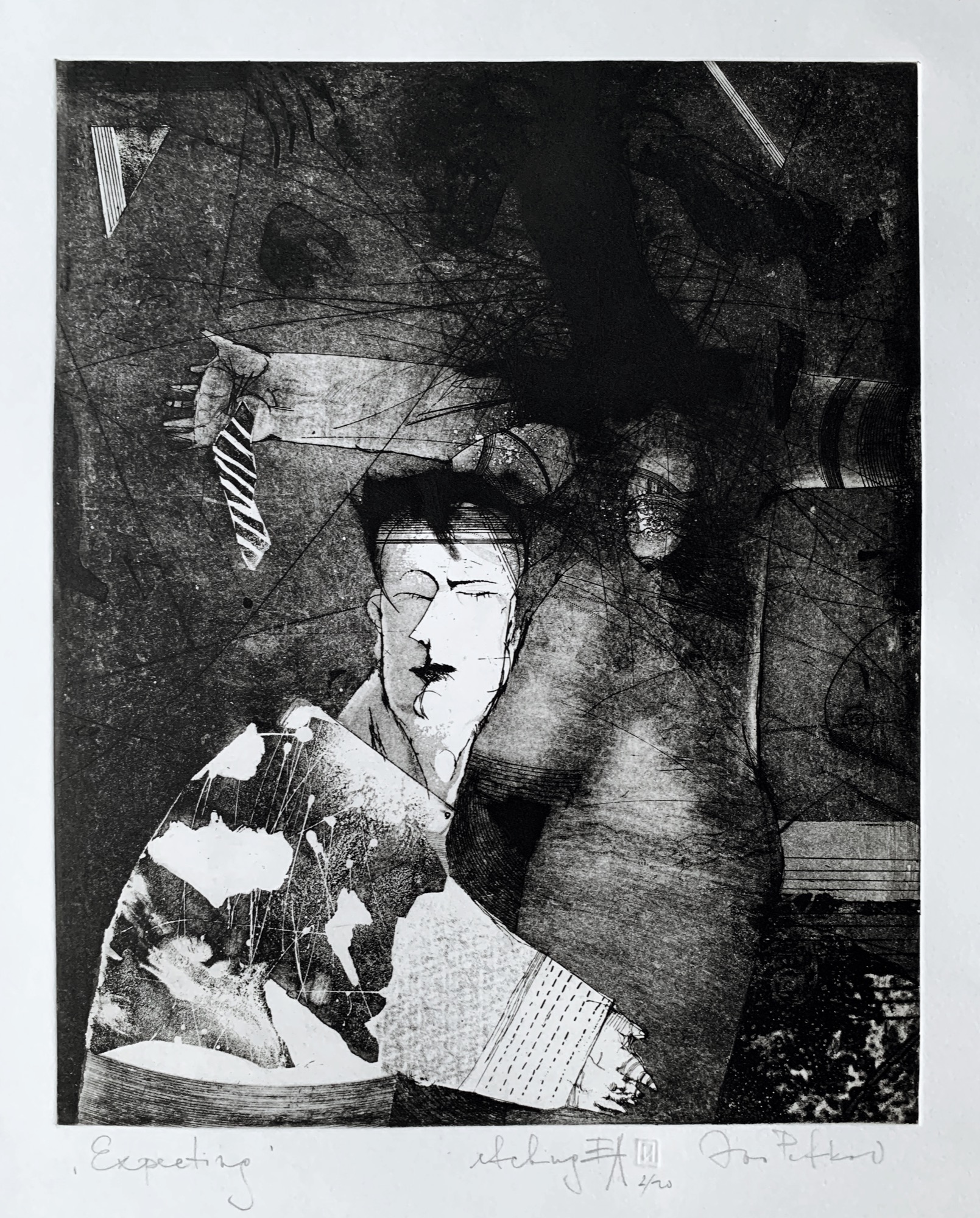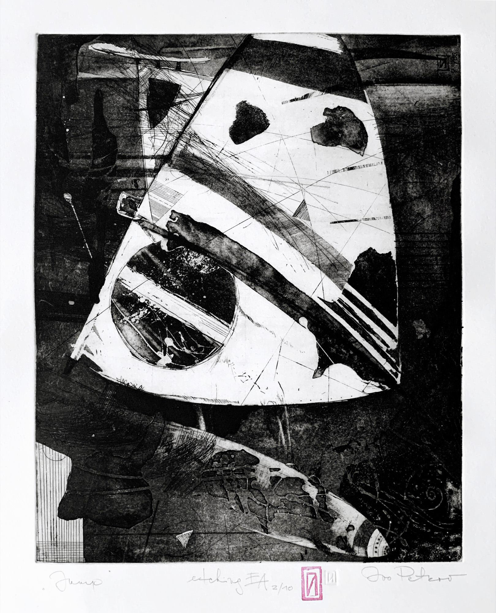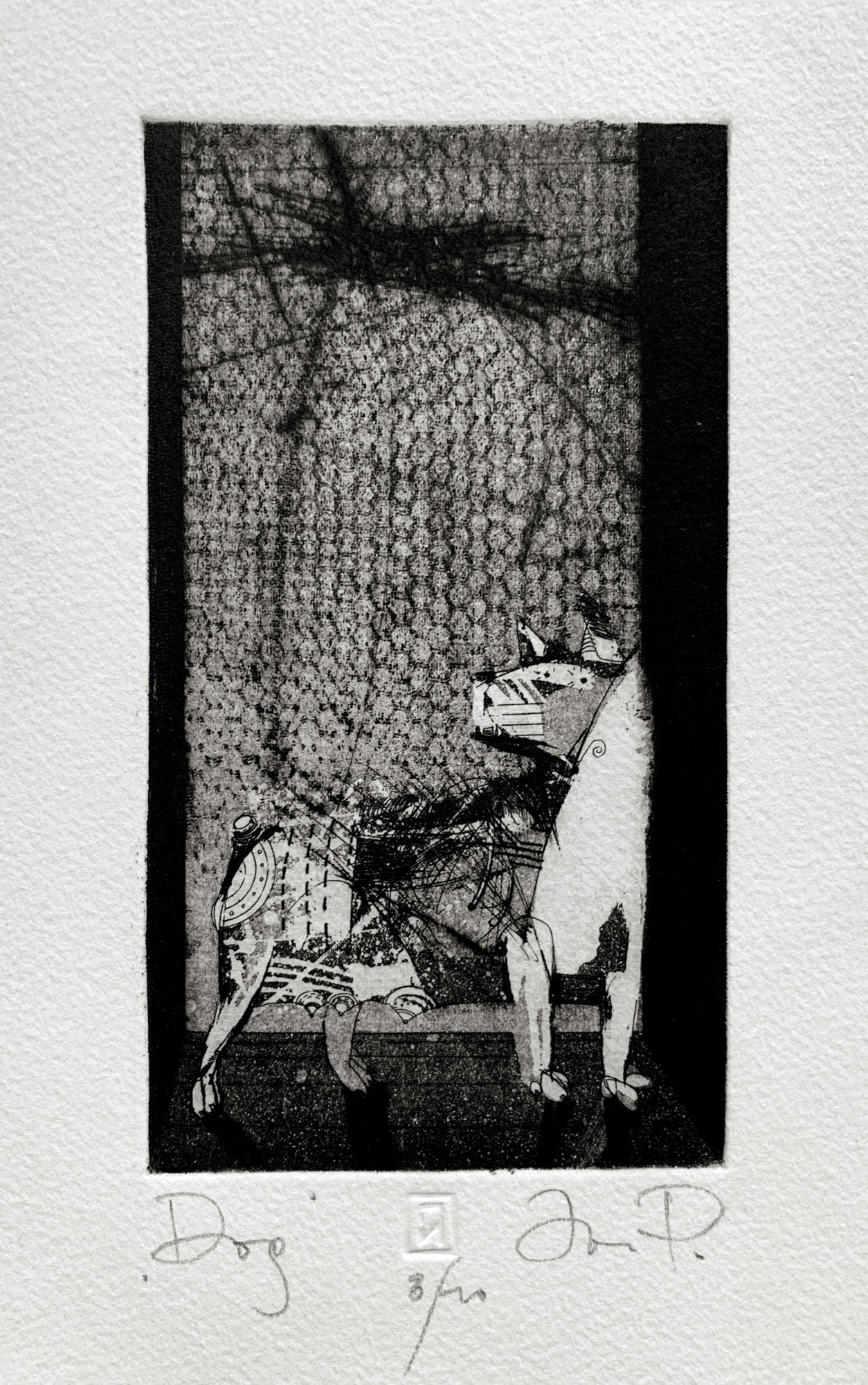 This is only a small portion of Ivo's prints, predominantly from the period 1985-88. The main medium is intaglio on copper. While working with AIC Fine Arts in Los Angles, CA, the gallery owner William Ward III initiated producing a series of 18 ca gold plated print plates, essentially cancelled at the final print, to be framed with the last of the edition as a collector's item. All artworks are in very limited editions of 10. During the tumultuous years after the fall of the Berlin Wall, some of the original plates were lost from Ivo's studio in Sofia. All copper plates, produced at the printmaking facility of the School of Arts, Washington University in Saint Louis, MO, were essentially put through the gold plating cancellation process and framed accordingly. Some of them were also hand-colored with auqarelle and feature an artist auto-glyph below the main image.