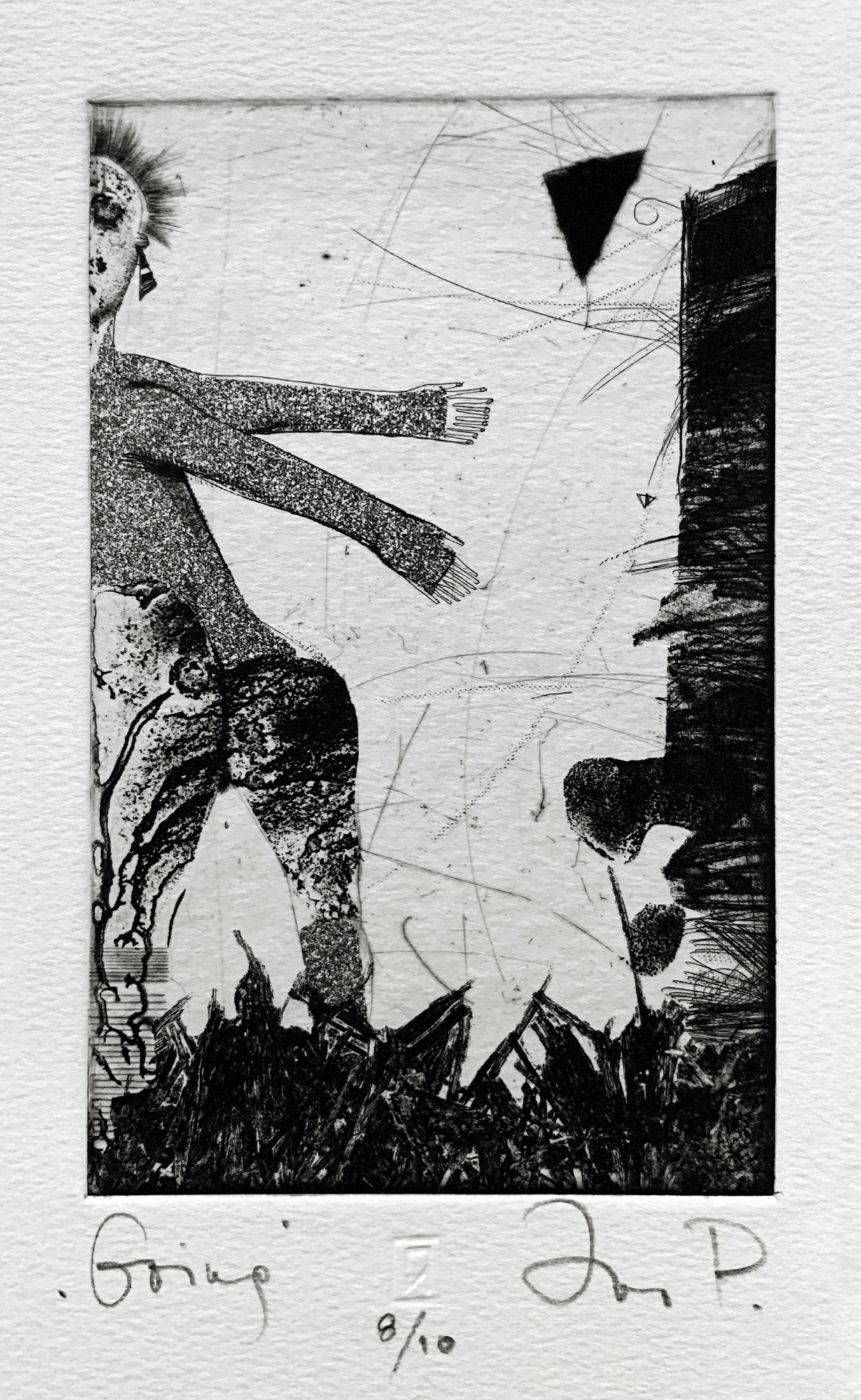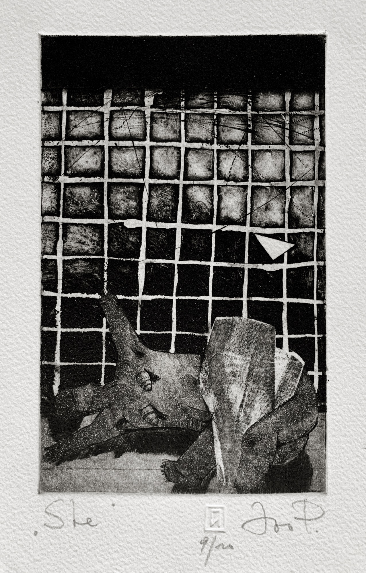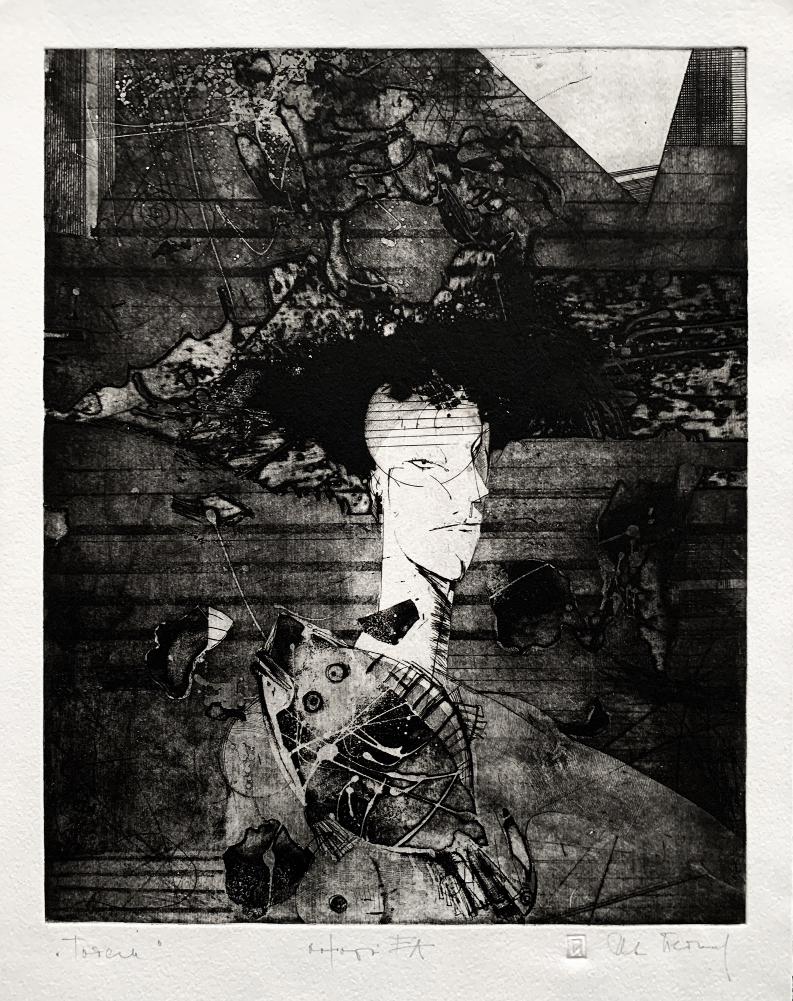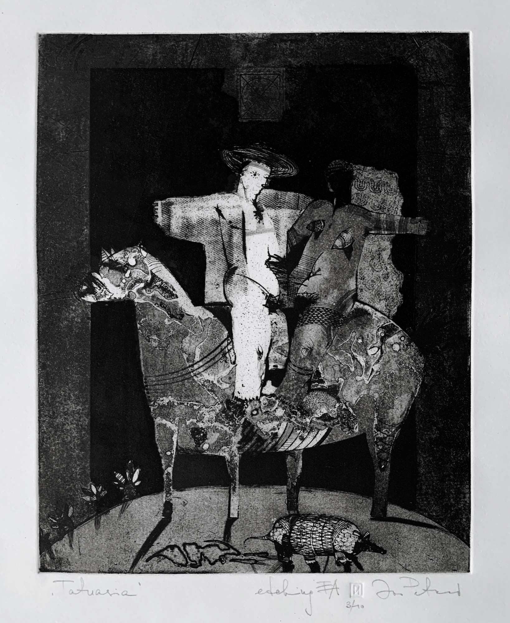 This is only a small portion of Ivo's prints, predominantly from the period 1985-88. The main medium is intaglio on copper. While working with AIC Fine Arts in Los Angles, CA, the gallery owner William Ward III initiated producing a series of 18 ca gold plated print plates, essentially cancelled at the final print, to be framed with the last of the edition as a collector's item. All artworks are in very limited editions of 10. During the tumultuous years after the fall of the Berlin Wall, some of the original plates were lost from Ivo's studio in Sofia. All copper plates, produced at the printmaking facility of the School of Arts, Washington University in Saint Louis, MO, were essentially put through the gold plating cancellation process and framed accordingly. Some of them were also hand-colored with auqarelle and feature an artist auto-glyph below the main image.