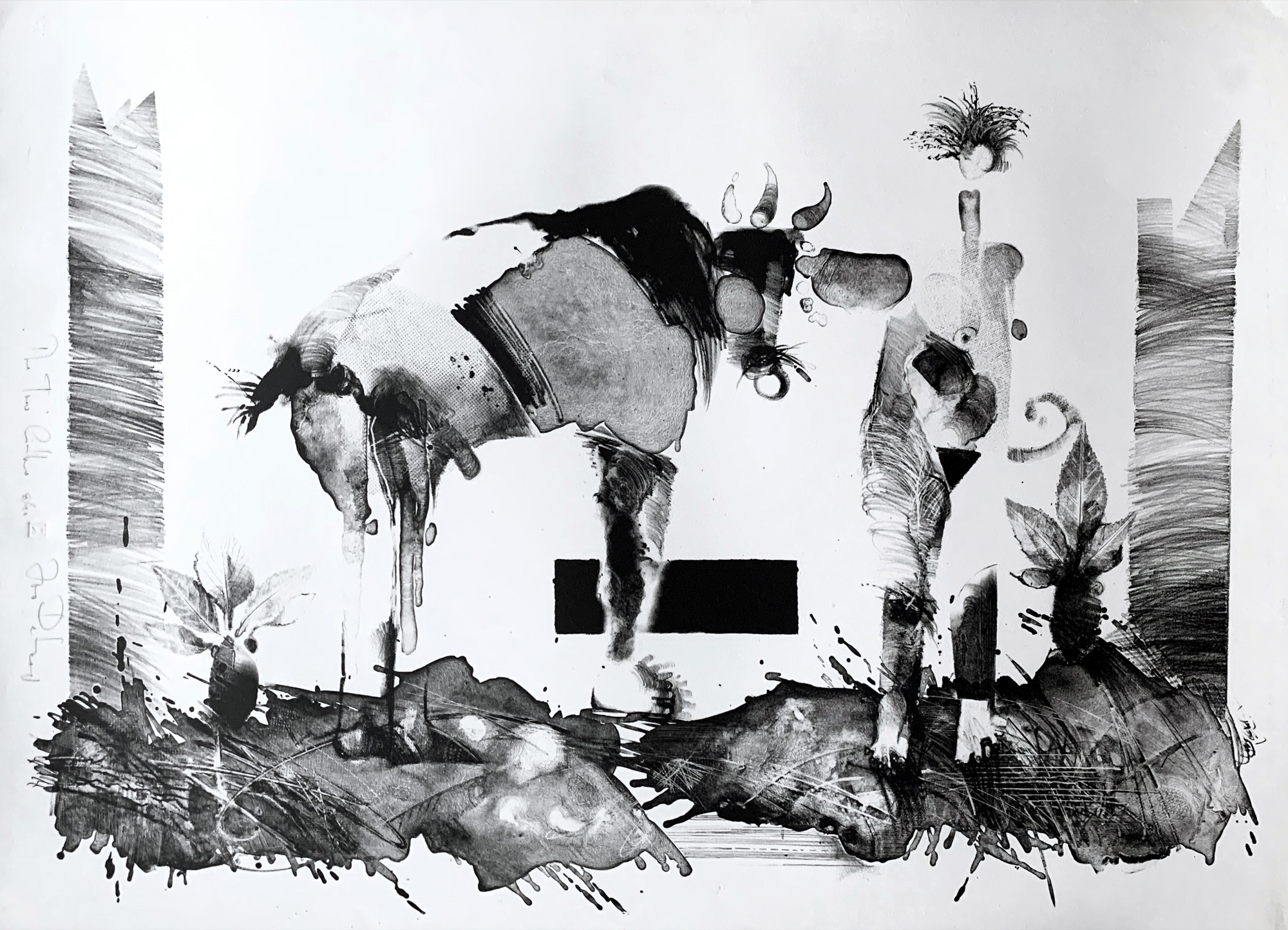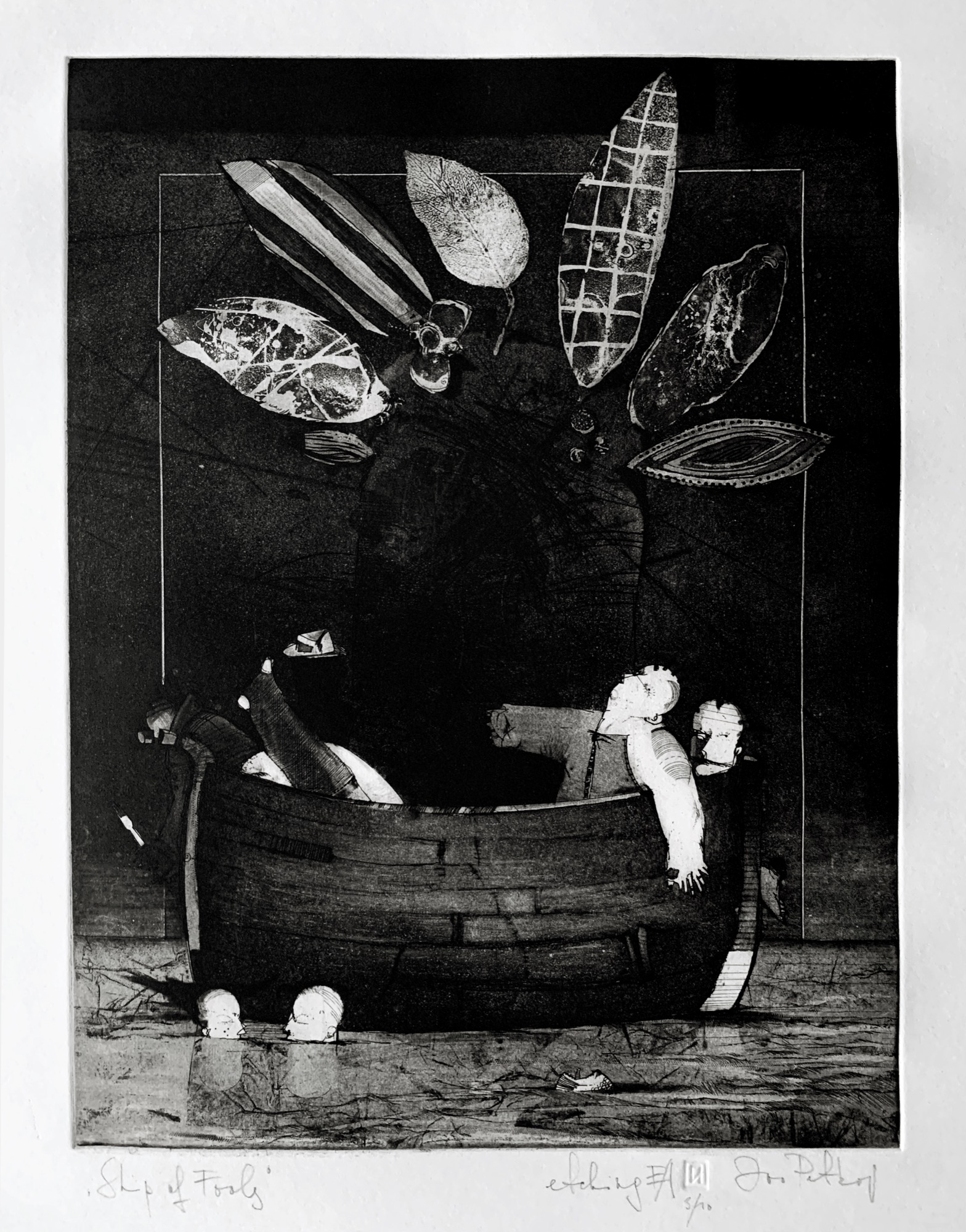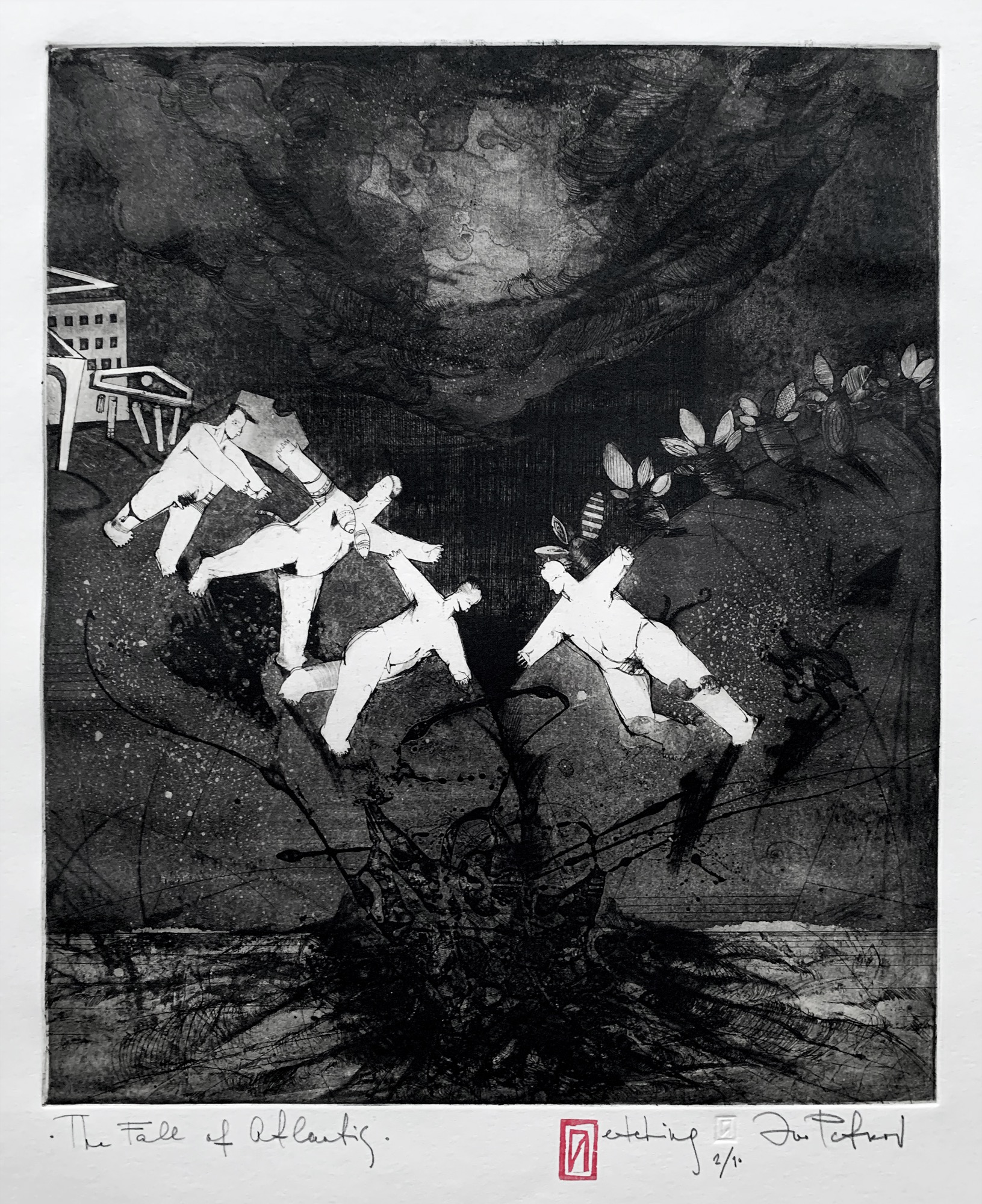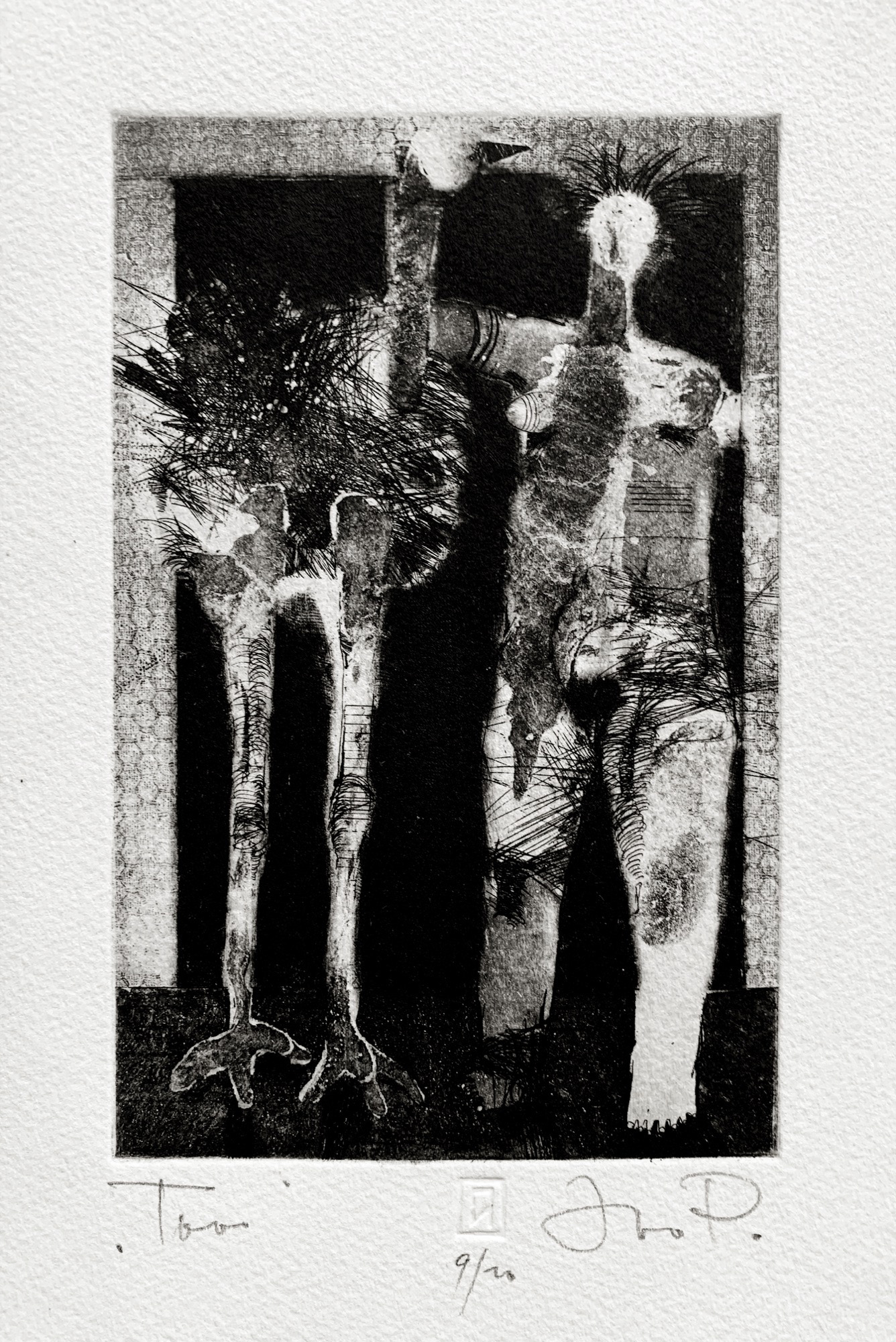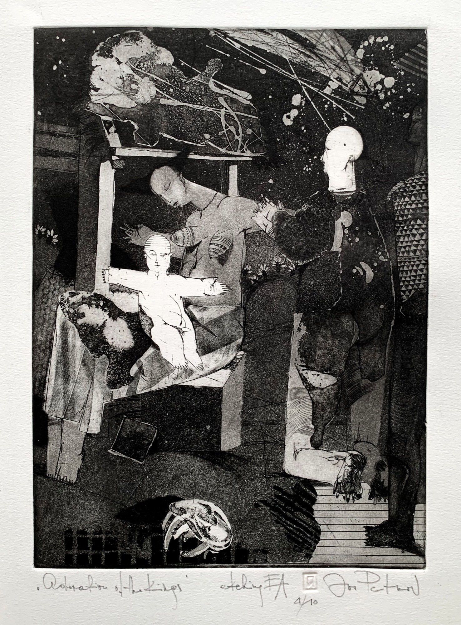 This is only a small portion of Ivo's prints, predominantly from the period 1985-88. The main medium is intaglio on copper. While working with AIC Fine Arts in Los Angles, CA, the gallery owner William Ward III initiated producing a series of 18 ca gold plated print plates, essentially cancelled at the final print, to be framed with the last of the edition as a collector's item. All artworks are in very limited editions of 10. During the tumultuous years after the fall of the Berlin Wall, some of the original plates were lost from Ivo's studio in Sofia. All copper plates, produced at the printmaking facility of the School of Arts, Washington University in Saint Louis, MO, were essentially put through the gold plating cancellation process and framed accordingly. Some of them were also hand-colored with auqarelle and feature an artist auto-glyph below the main image.