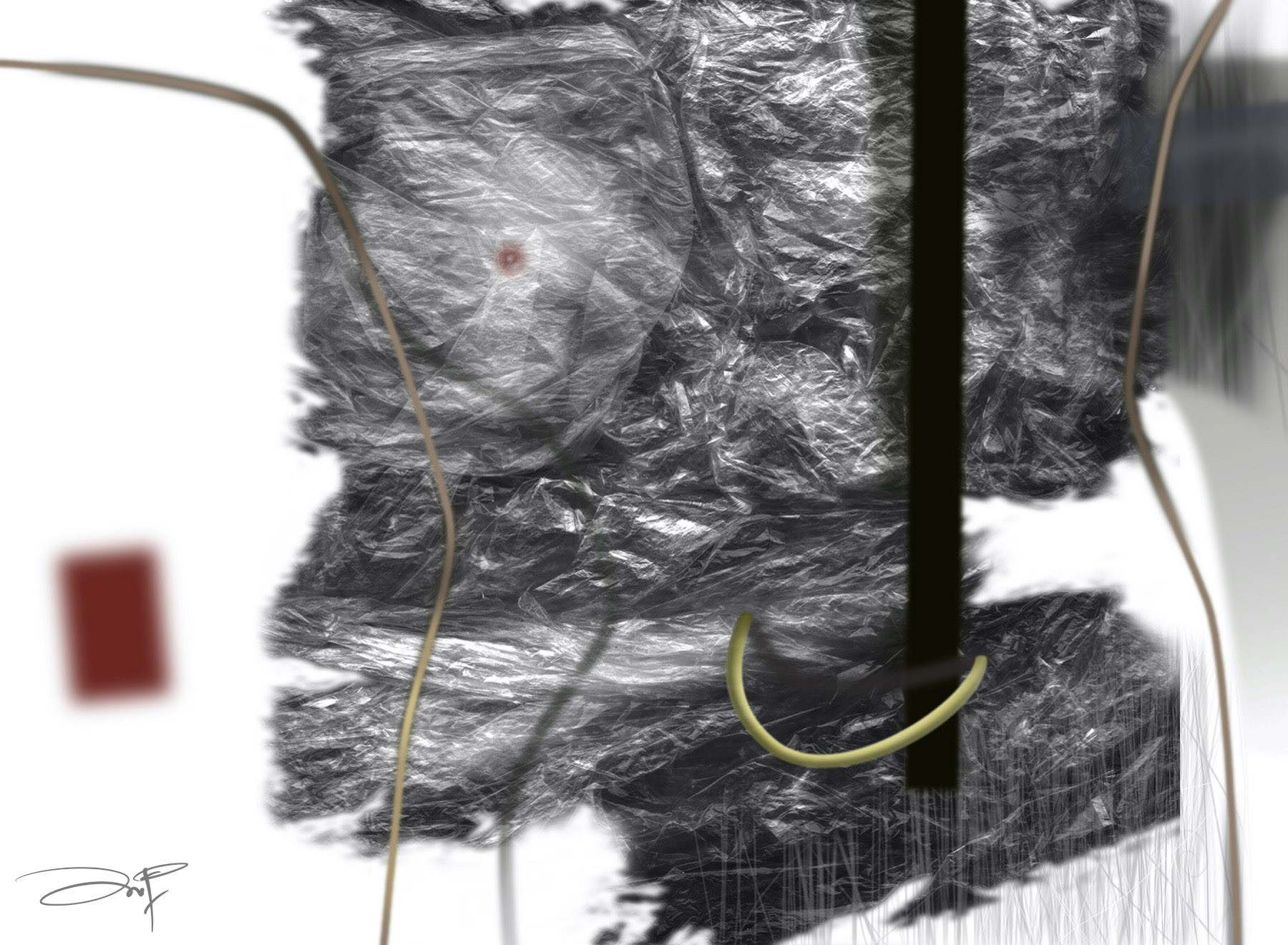 This series follows a different take on the classic reclining nude theme which has captivated artists through out the centuries. The collage-like approach explores a flattened human body within a still life environment. Minimalistic composition approach emphasizes the textured value of the figure, which goes beyond any direct representation and establishes a rather symbolic presence in abstract space. Parting with a feeling is also present a every level, harmonizing with the calm anatomy of the artworks in the series.