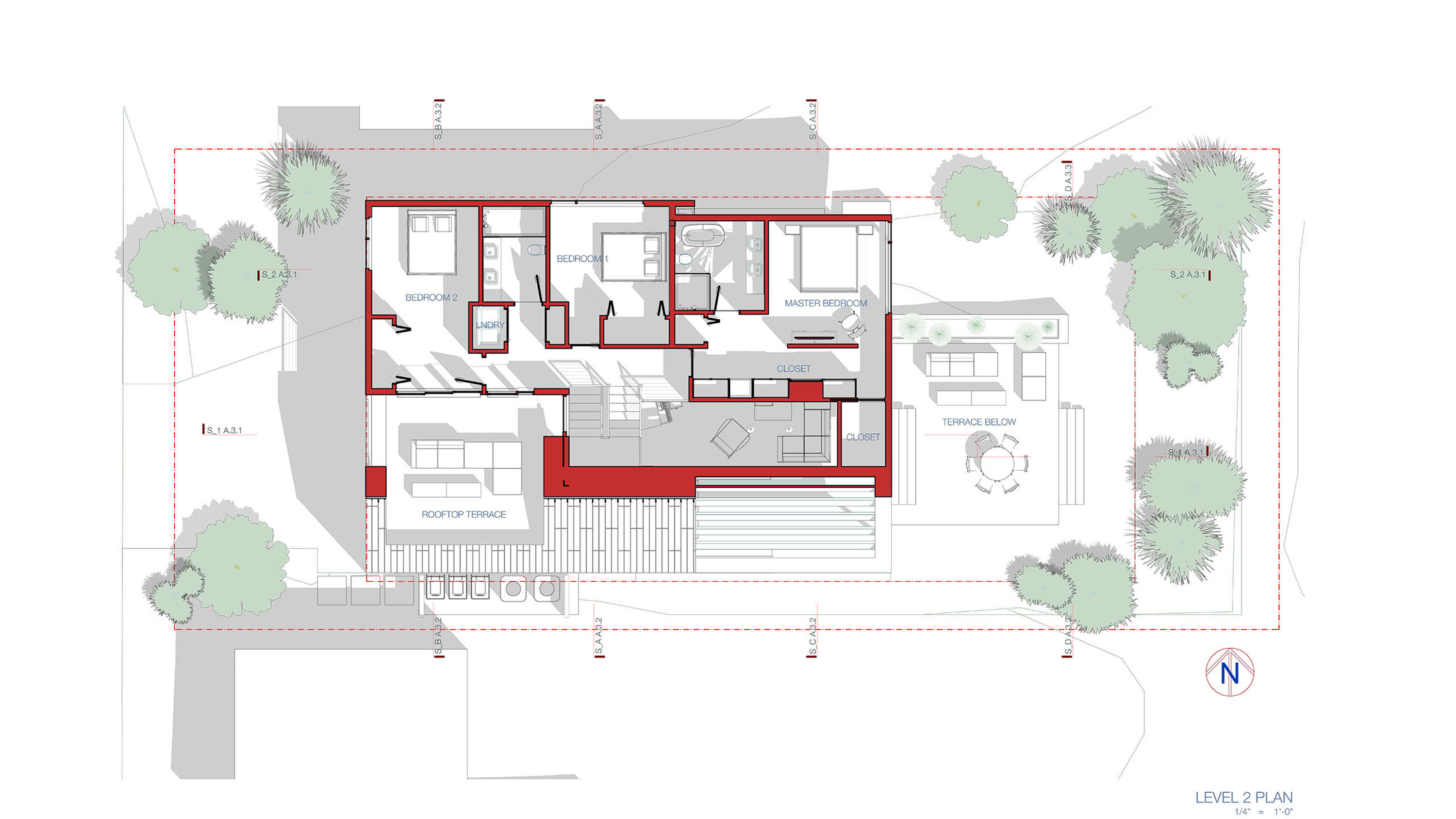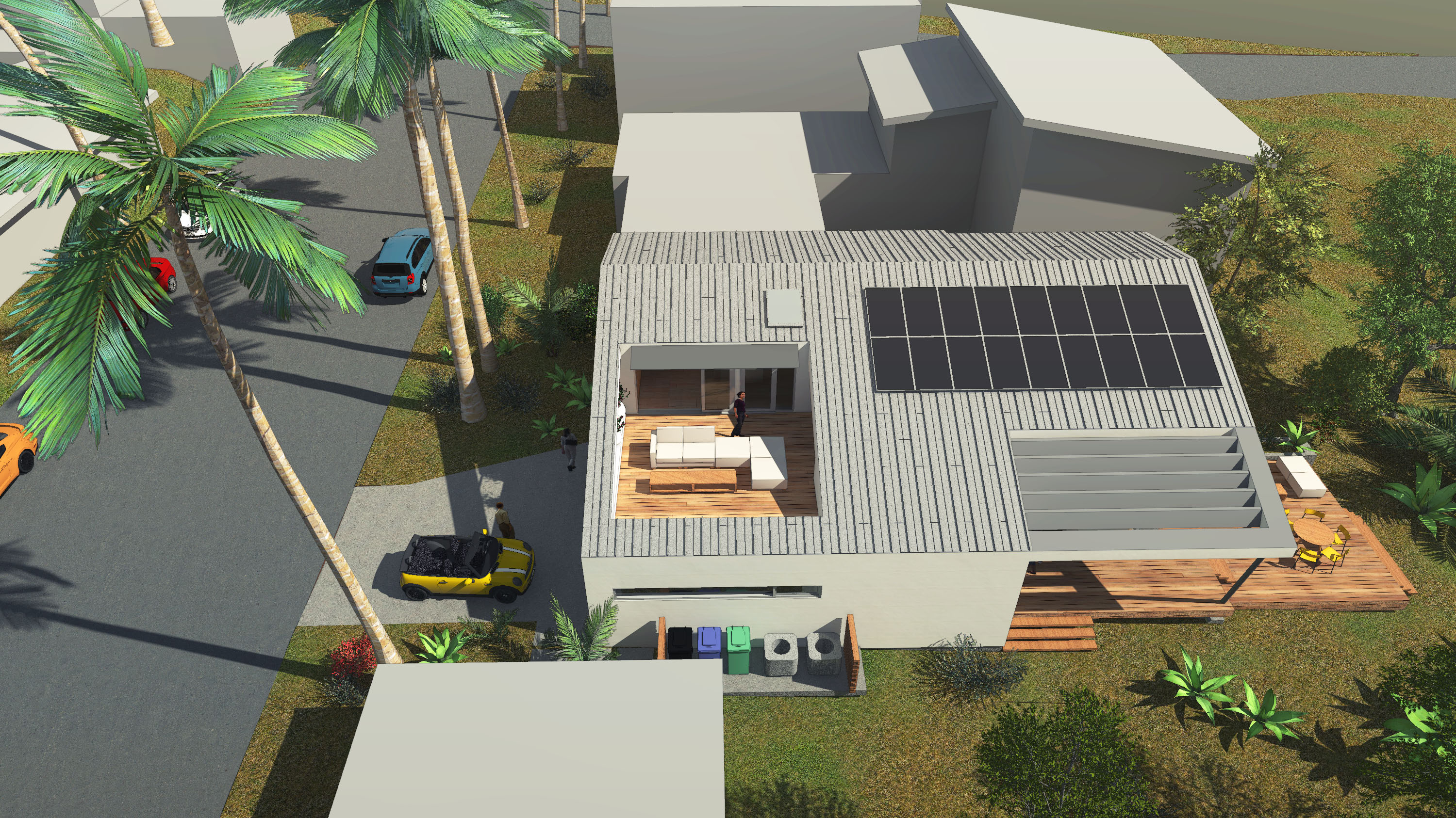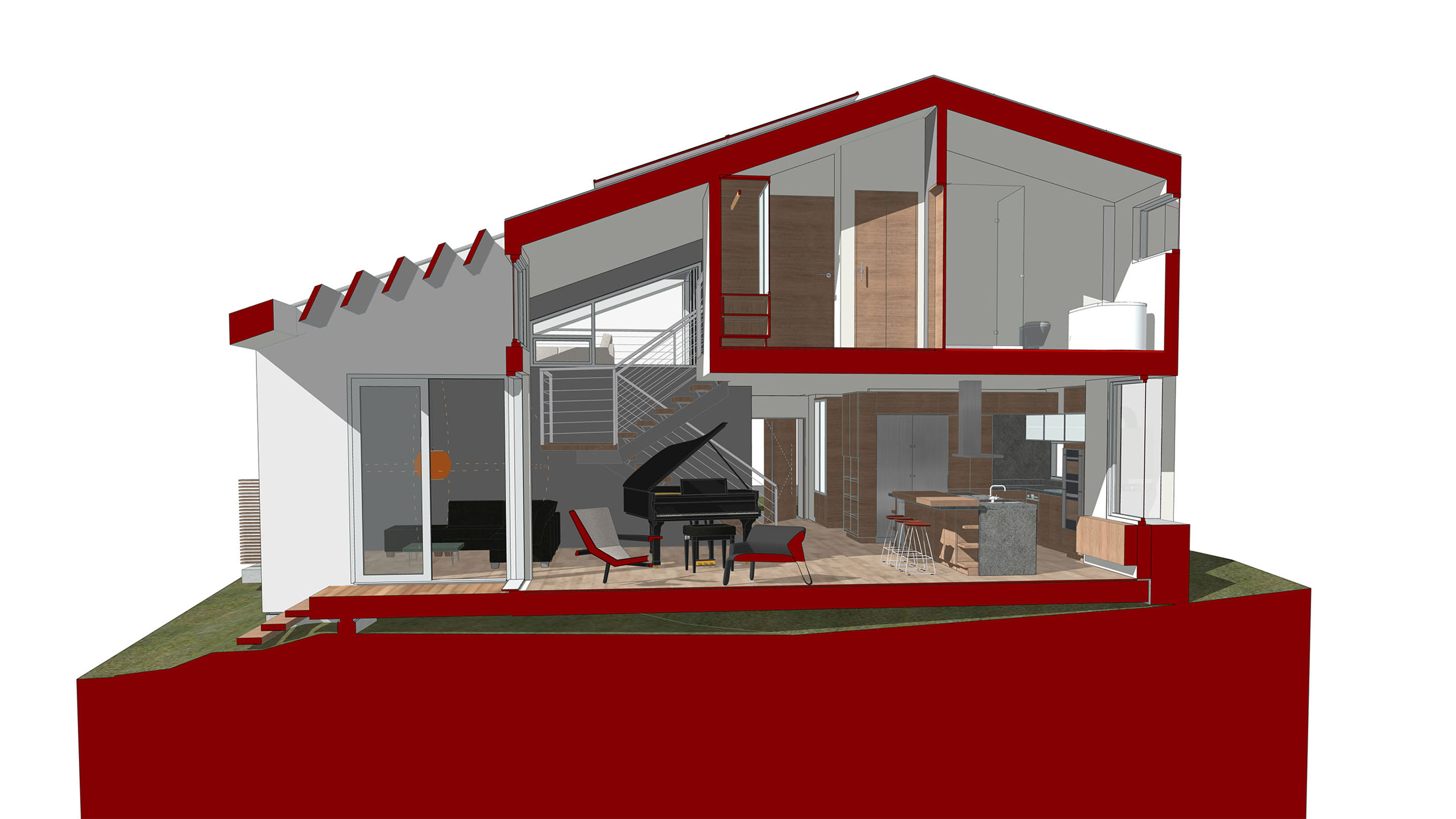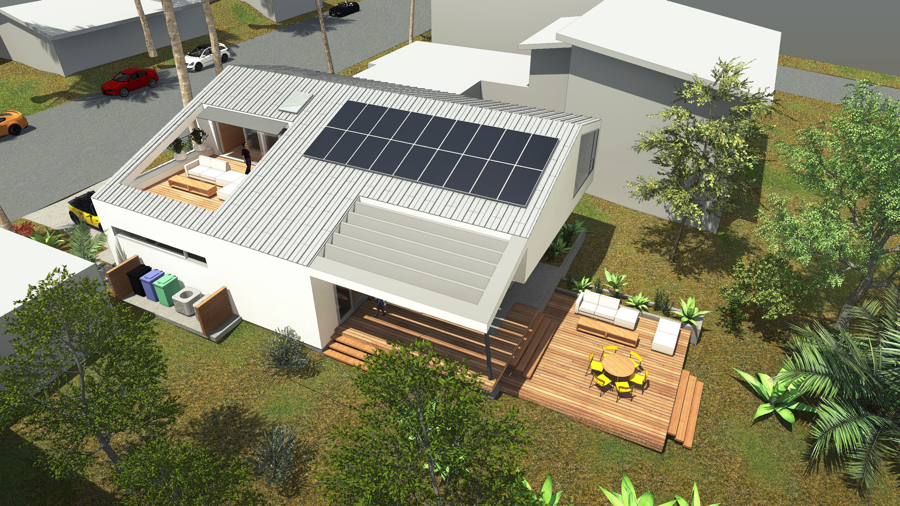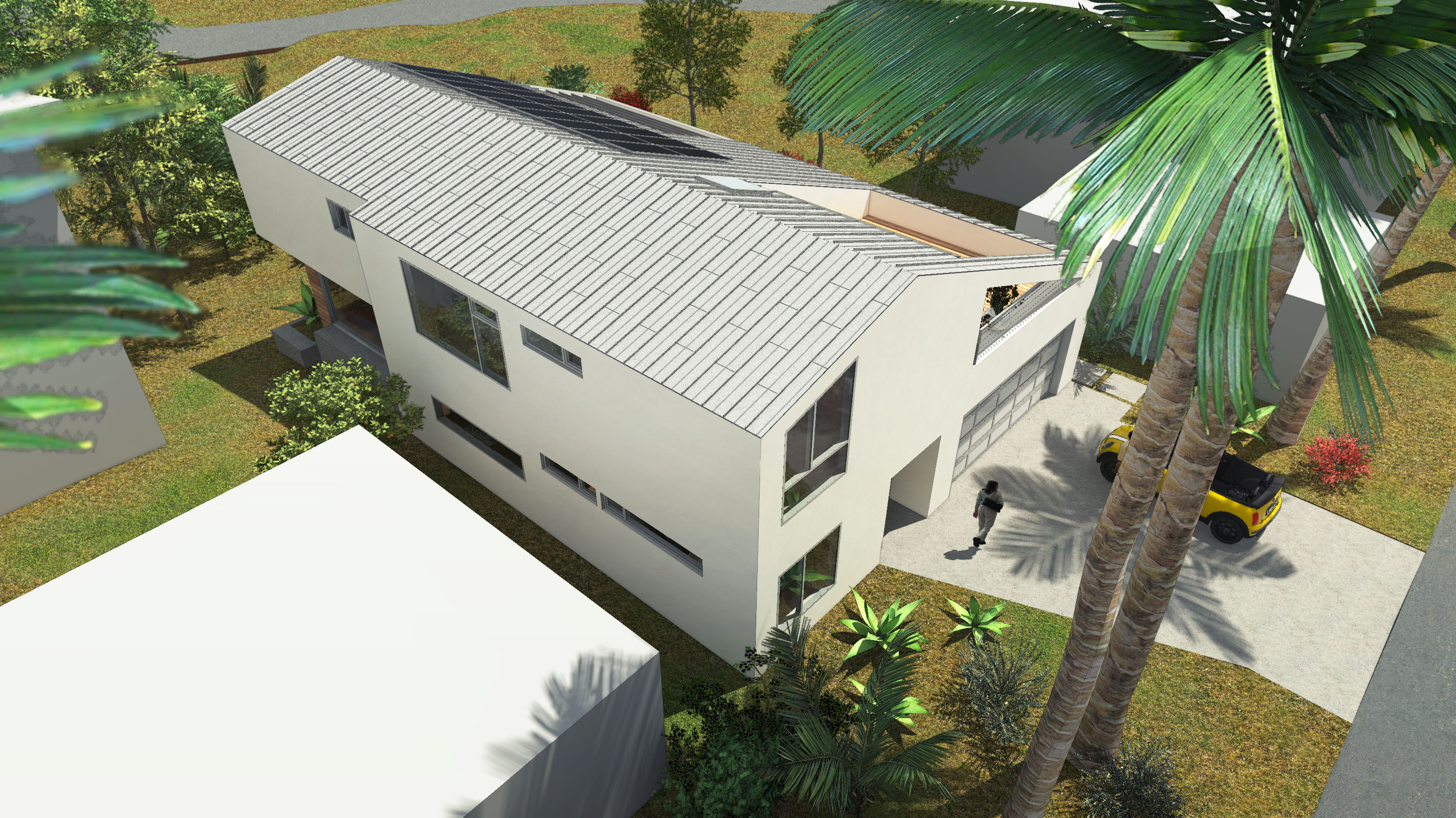 Amidst the urban setting, a tranquil garden offers a serene escape, connecting the home to nature. The rooftop deck over the garage provides panoramic views and a unique outdoor space for relaxation and entertainment. An optional ADU, part of another permit, adds to the home’s versatility and addresses California’s call for diversity and extended city planning needs. The small unit, fully autonomous, could be used as a rental or a guest suite.
