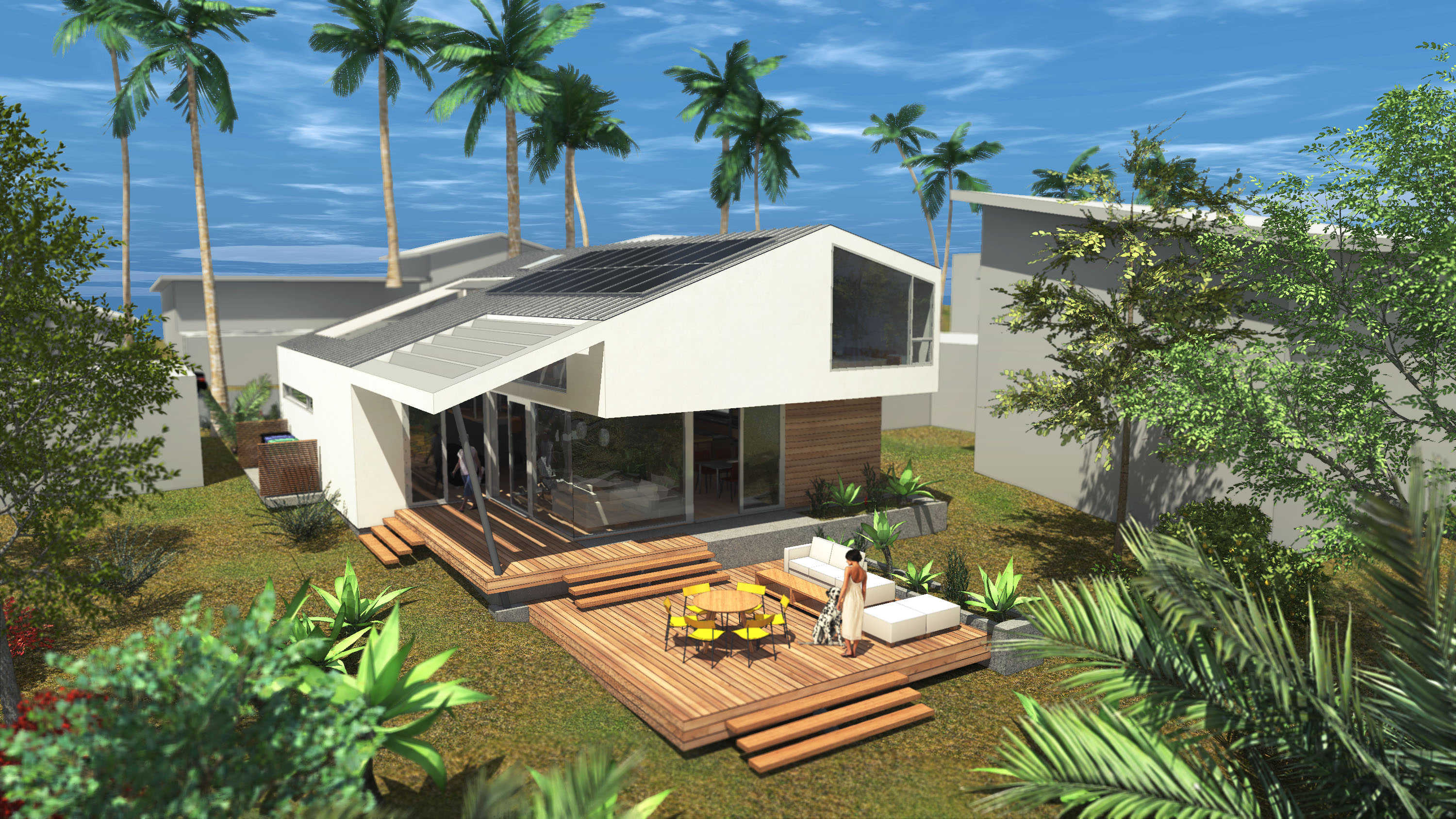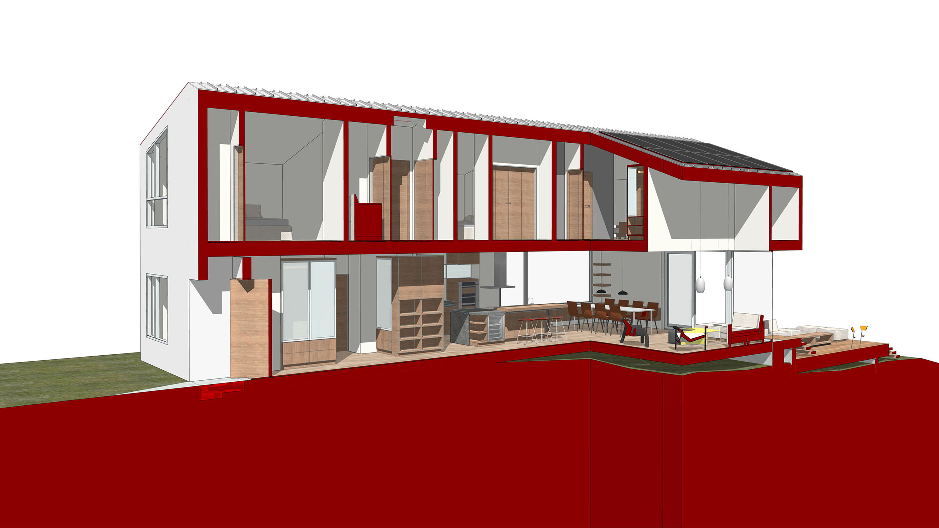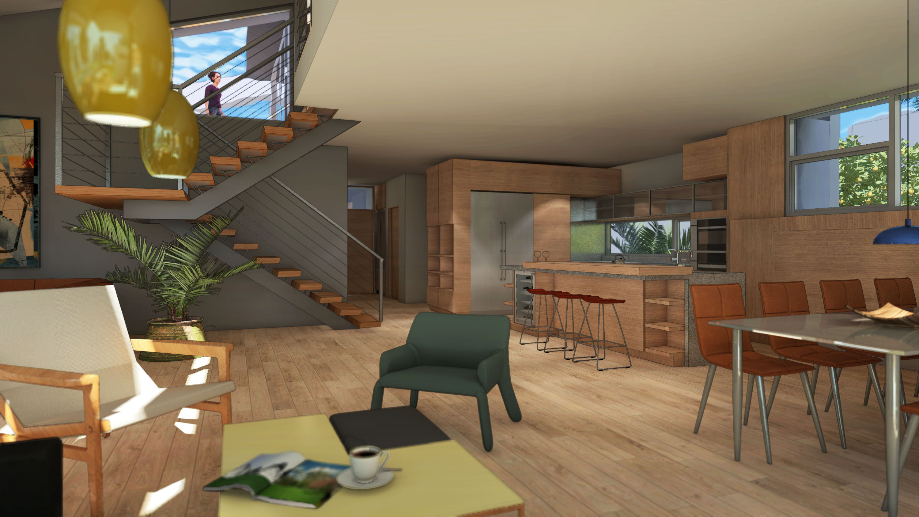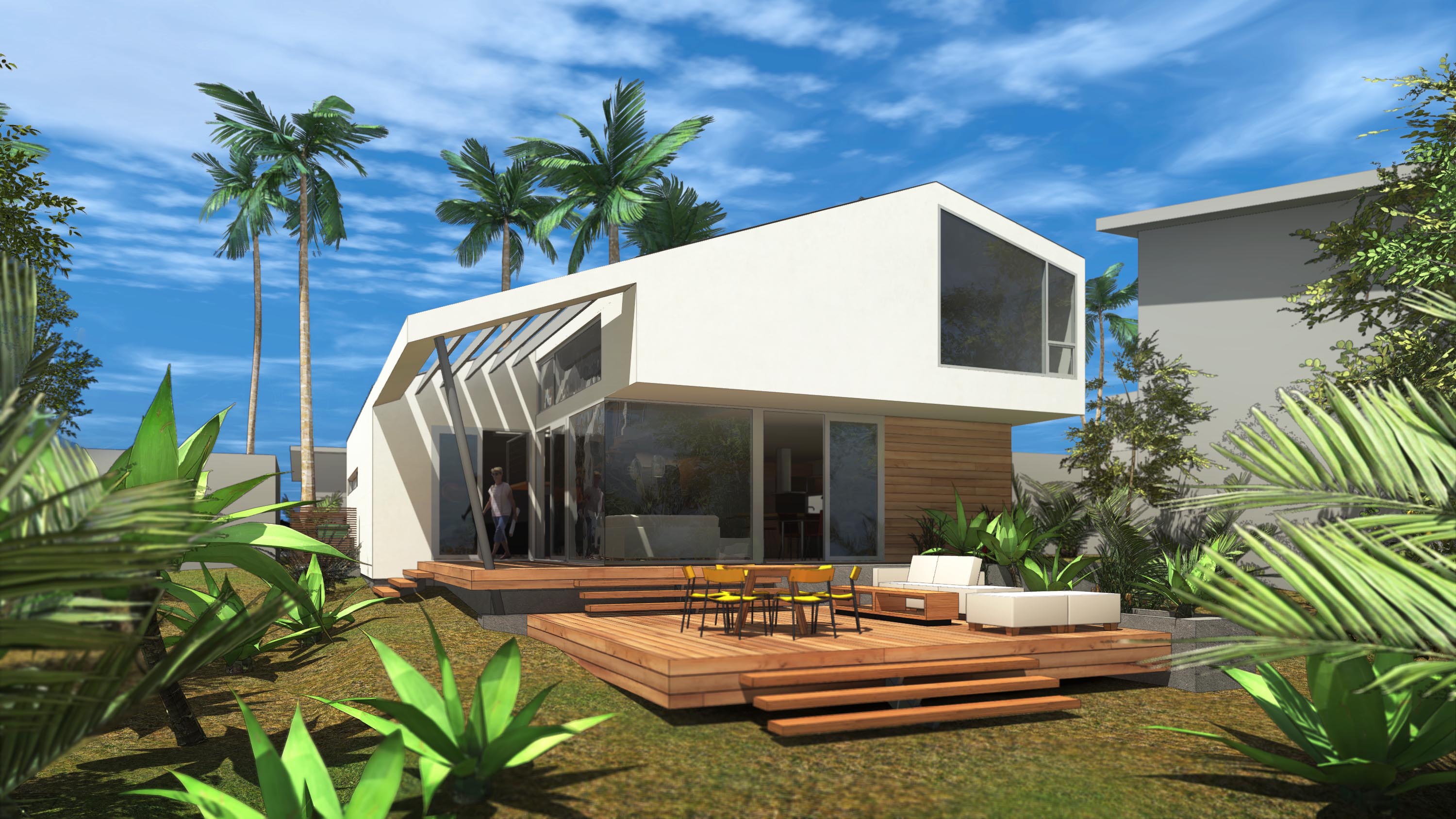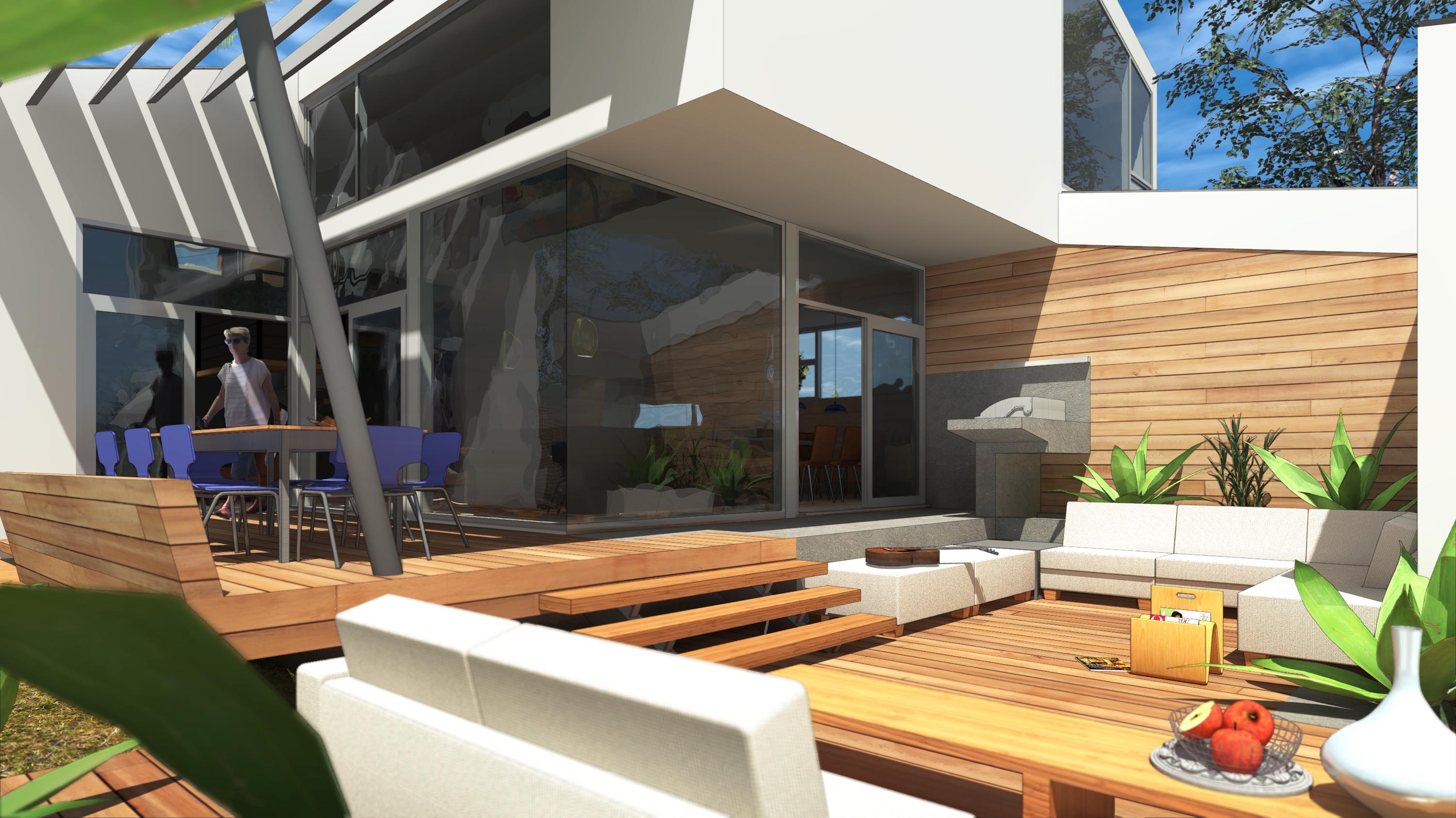 Amidst the urban setting, a tranquil garden offers a serene escape, connecting the home to nature. The rooftop deck over the garage provides panoramic views and a unique outdoor space for relaxation and entertainment. An optional ADU, part of another permit, adds to the home’s versatility and addresses California’s call for diversity and extended city planning needs. The small unit, fully autonomous, could be used as a rental or a guest suite.