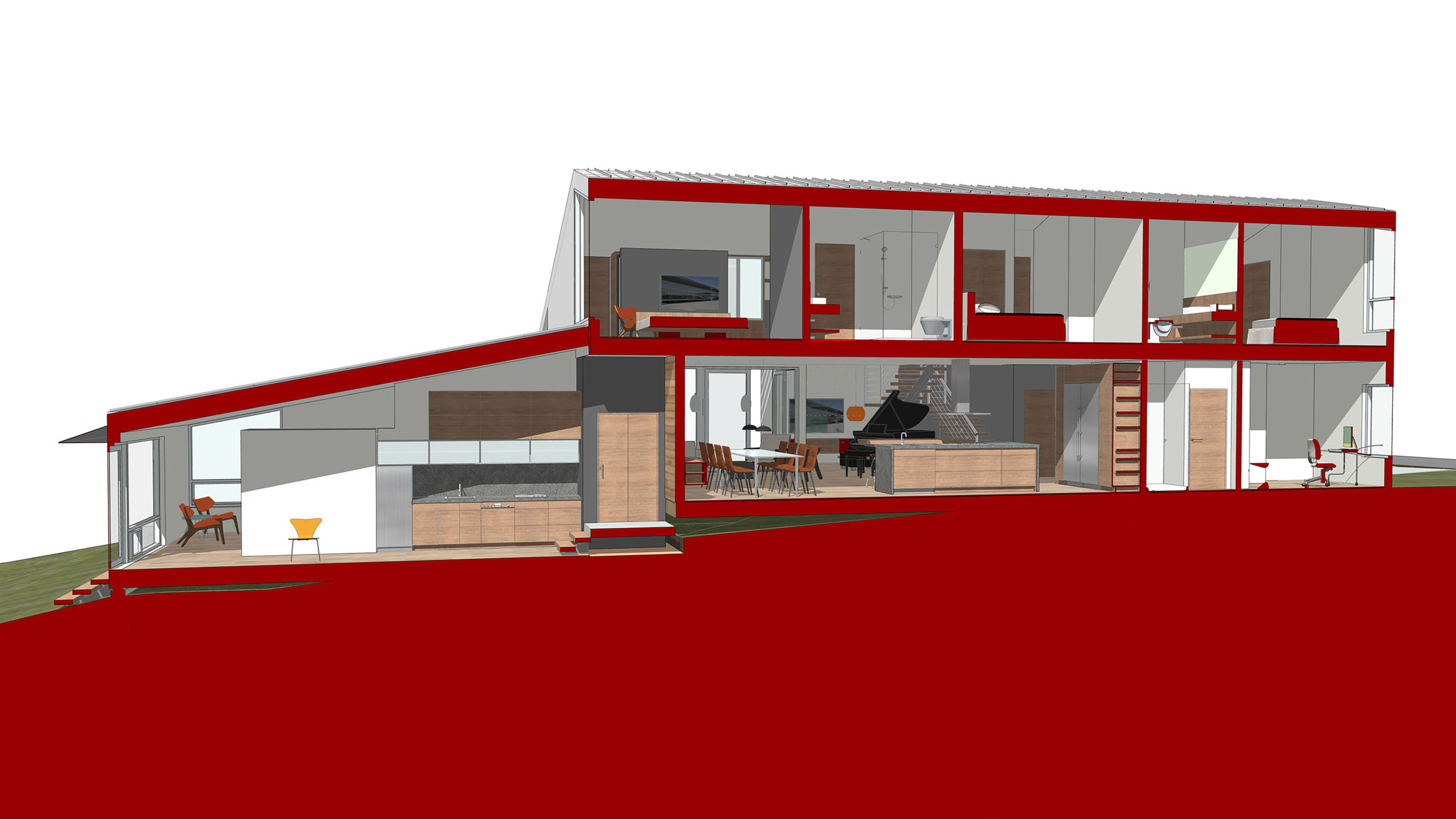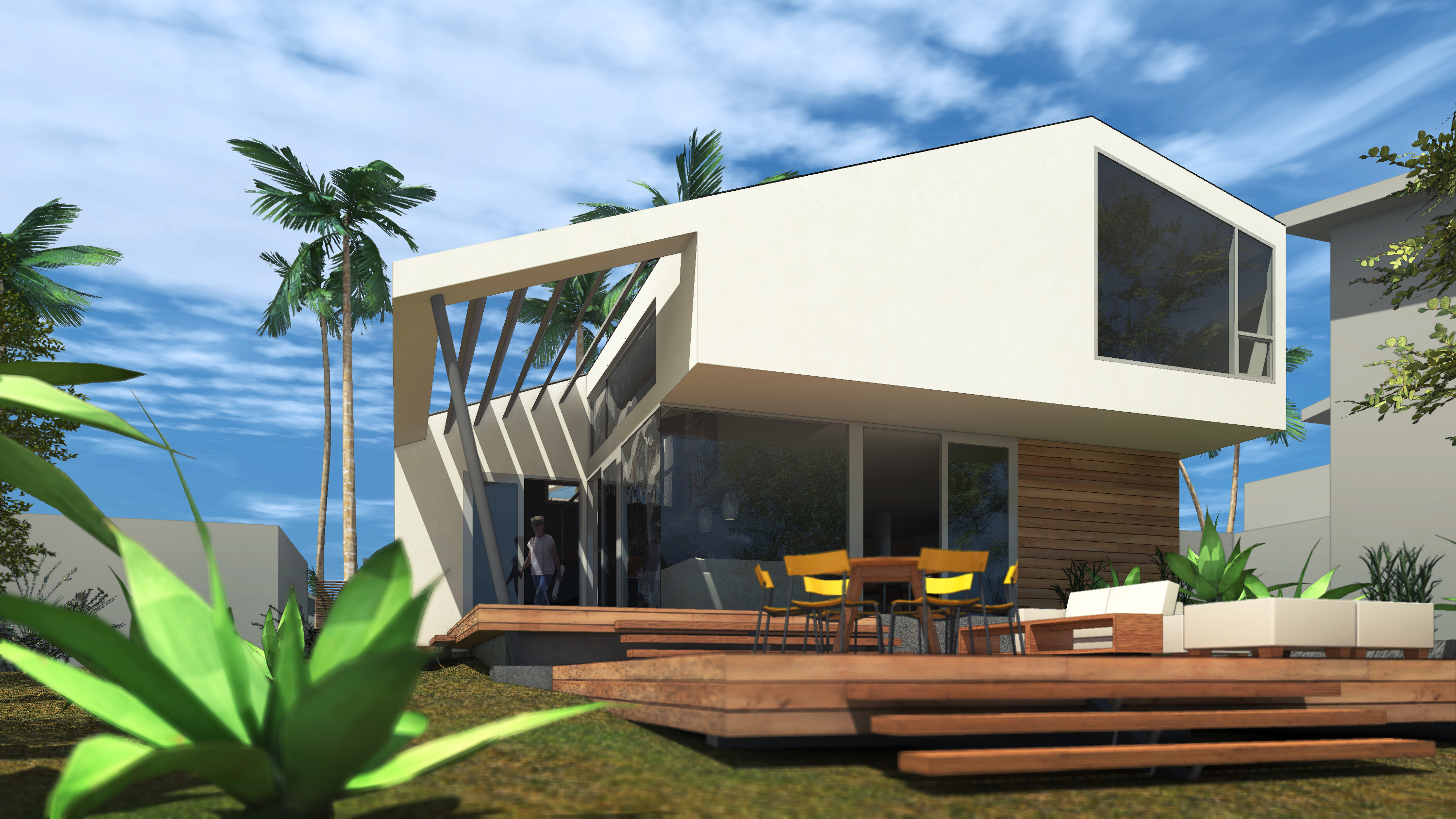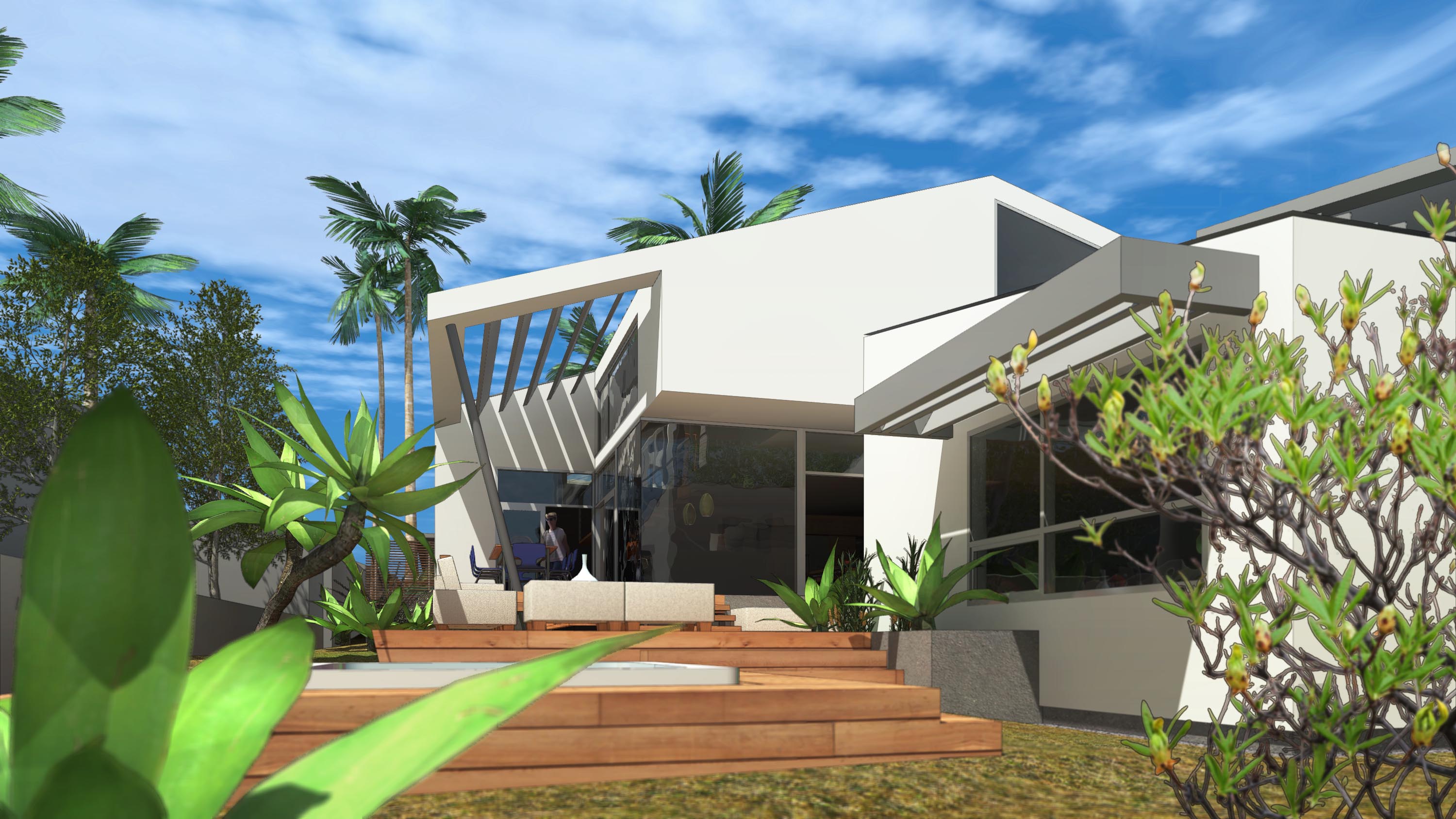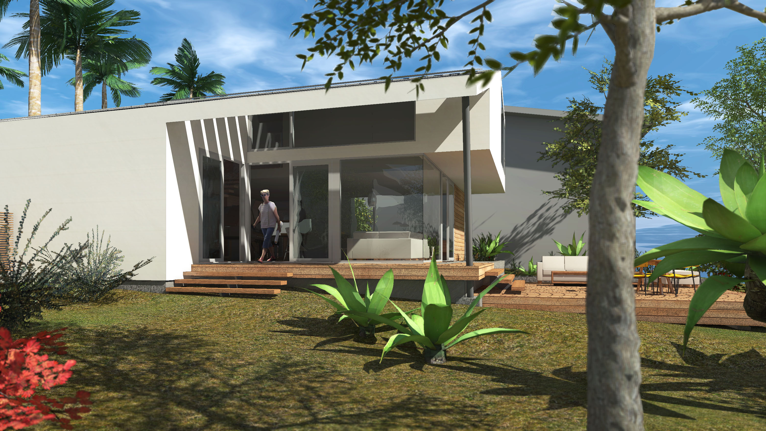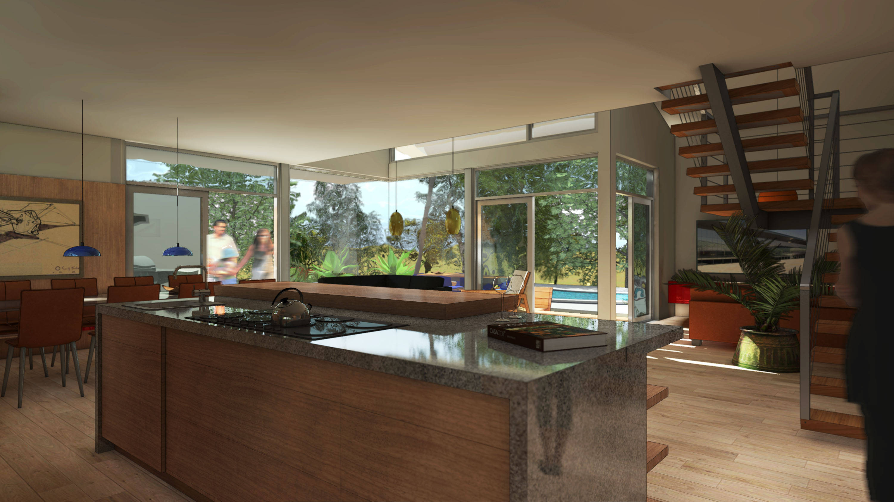 Amidst the urban setting, a tranquil garden offers a serene escape, connecting the home to nature. The rooftop deck over the garage provides panoramic views and a unique outdoor space for relaxation and entertainment. An optional ADU, part of another permit, adds to the home’s versatility and addresses California’s call for diversity and extended city planning needs. The small unit, fully autonomous, could be used as a rental or a guest suite.